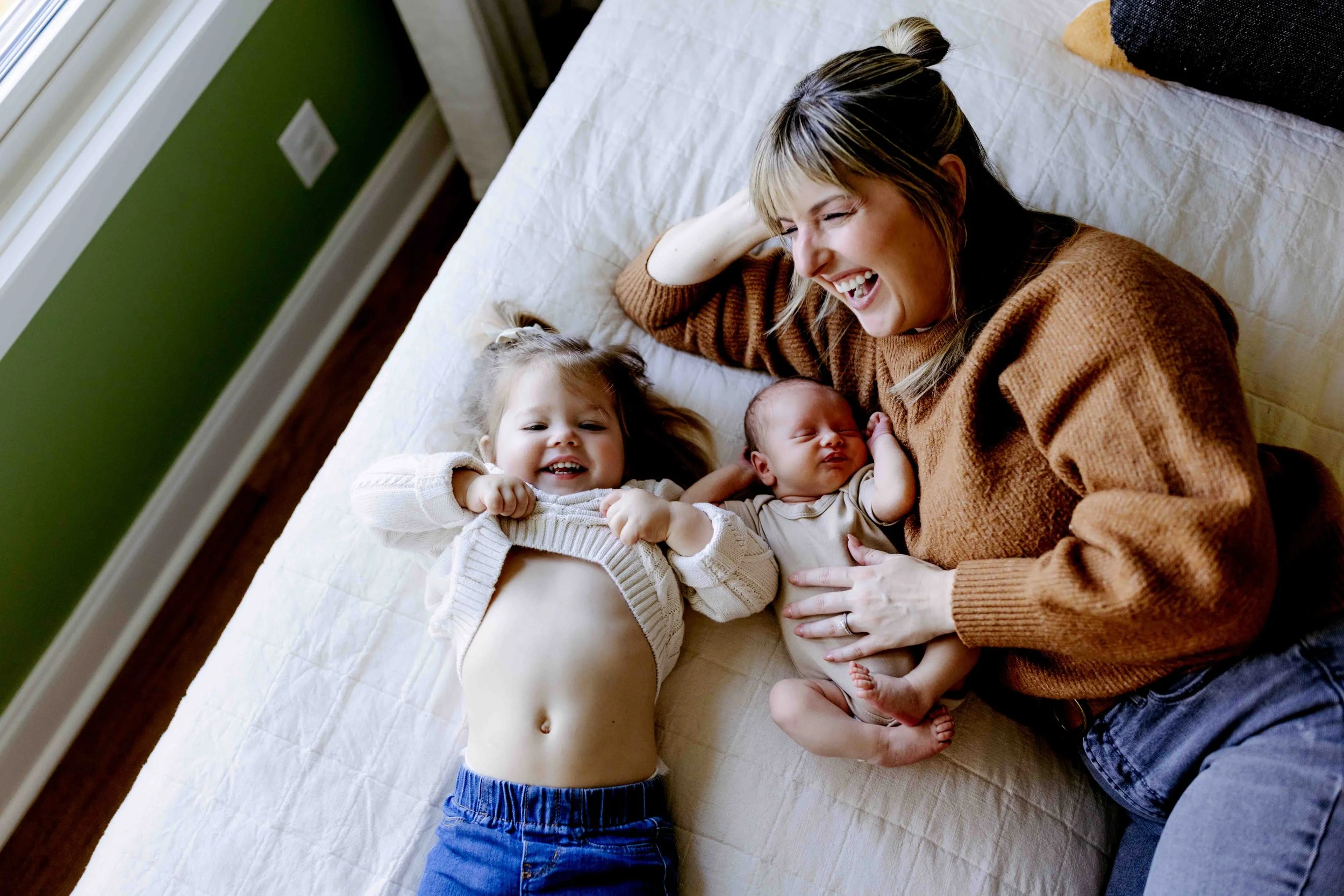 Lifestyle newborn photos focus less on perfection and more on connection, creating images that feel timeless and true to your family. During an in-home newborn photo session, there’s no rush and no pressure—just gentle guidance, soft window light, and space for everyone to be themselves. Including a sibling in your newborn photography tells a fuller story, preserving the beginning of their bond in a way that feels effortless and real. These newborn photos aren’t just portraits; they’re memories of the love, chaos, and tenderness of welcoming a new baby home.